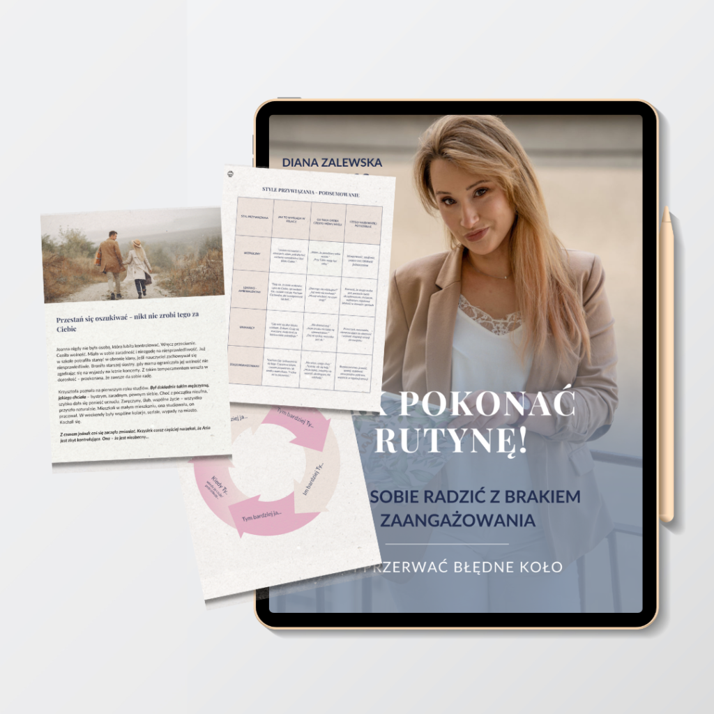 Właśnie dlatego powstał eBook „Jak zrozumieć partnera i odzyskać bliskość w związku” – praktyczny przewodnik, który pomoże Ci przerwać schemat braku zaangażowania, lepiej zrozumieć potrzeby partnera i odbudować więź, zanim dystans stanie się zbyt duży